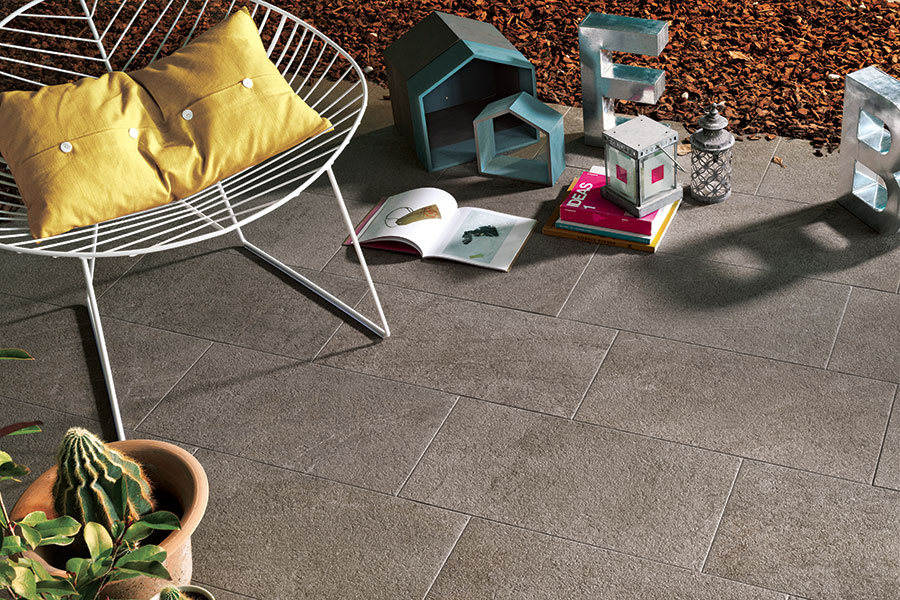 Ambient realizat cu: pardoseala din gresie portelanata cu aspect de piatra BLOCK Grigio 30x60cm colorata in masa, rectificata